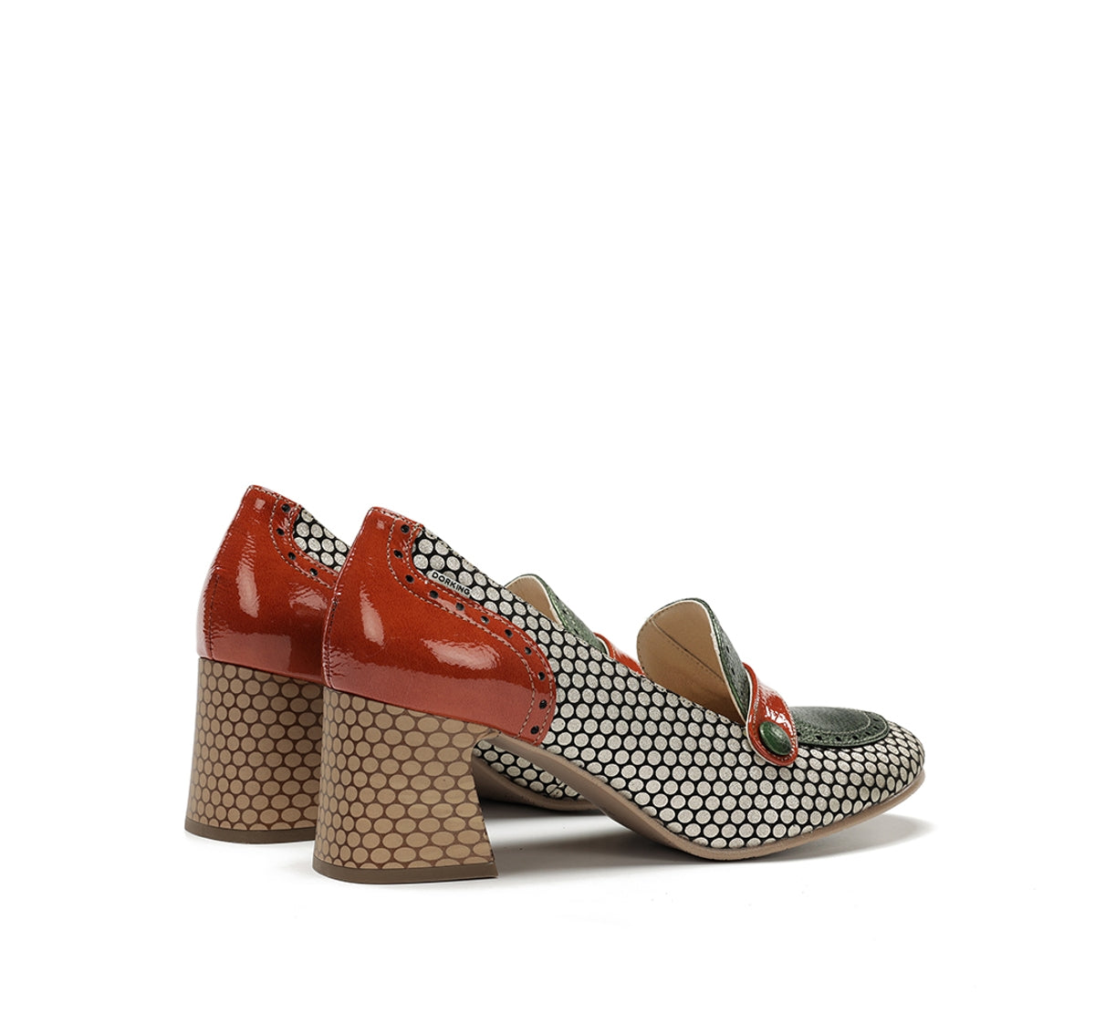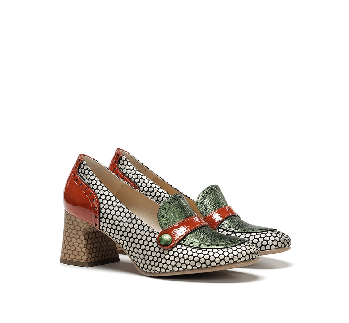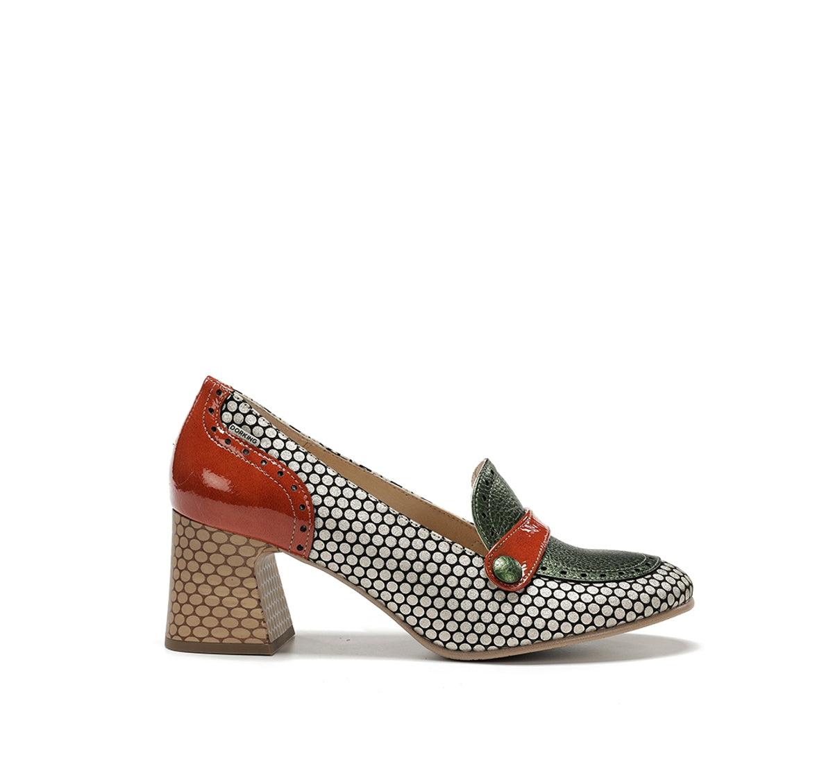 Daci stands out for its bold character and design full of personality. Available in versions with laces, a buckle, or an easy fit, it adapts to every style and occasion. Its geometric heel provides stability and a distinctive touch, while the mix of colours and textures conveys creative elegance. A model designed for women who like to stand out with their own unique style.