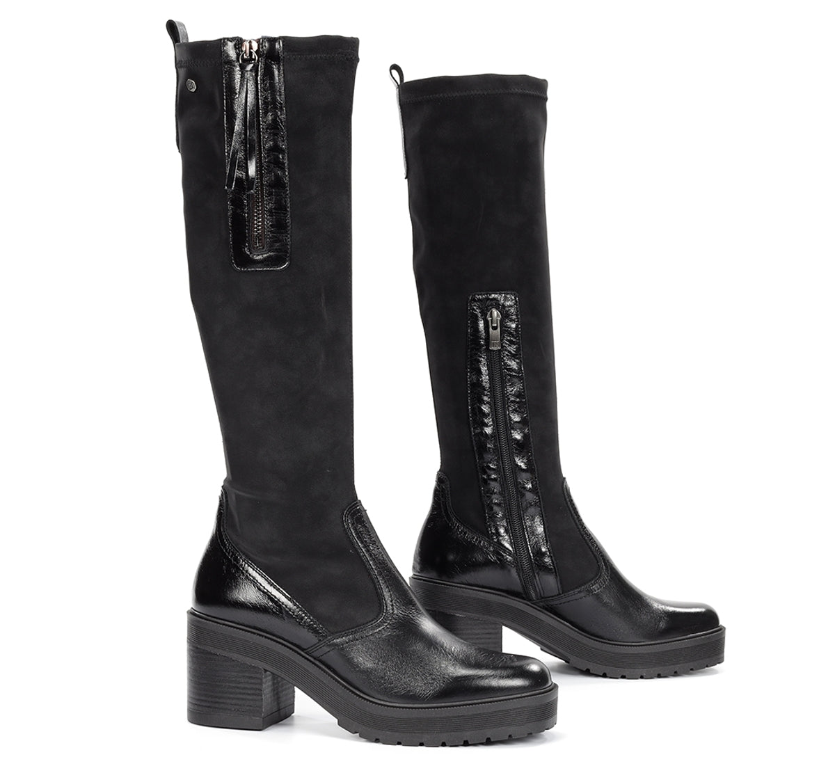 Sarah, your all-terrain boot. This chunky-heeled boot features a black side zipper and a pull tab at the back for easy fitting. Rubber sole with platform and non-slip design. Ideal for a casual or formal style with comfort and durability.